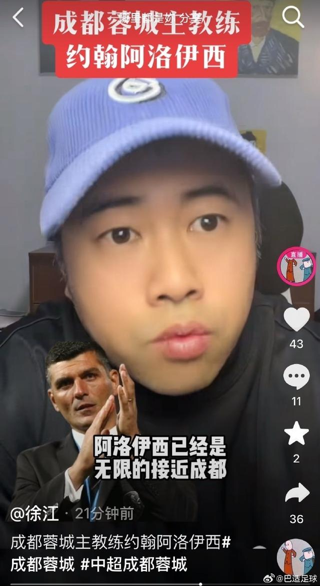 徐江在社交媒体透露,“阿洛伊西已经与成都蓉城无限接近签约,双方在合同、成绩要求方面都基本达成了一致。”